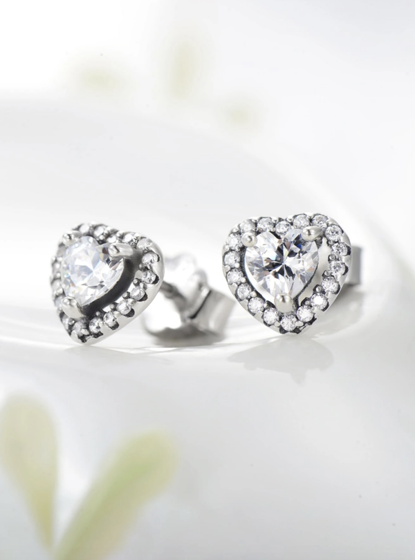 Boucles d'oreilles à coeur en zircon et argent