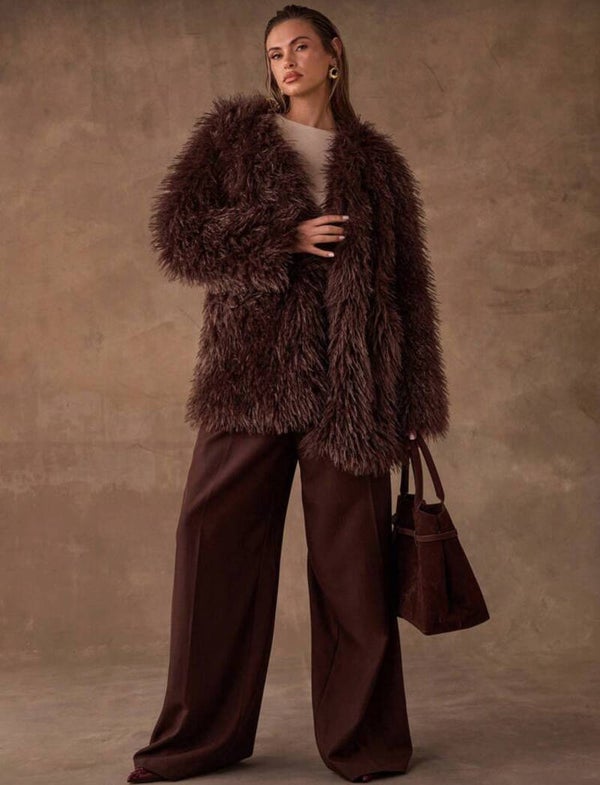 Manteau pelucheux en fausse fourrure pour femme